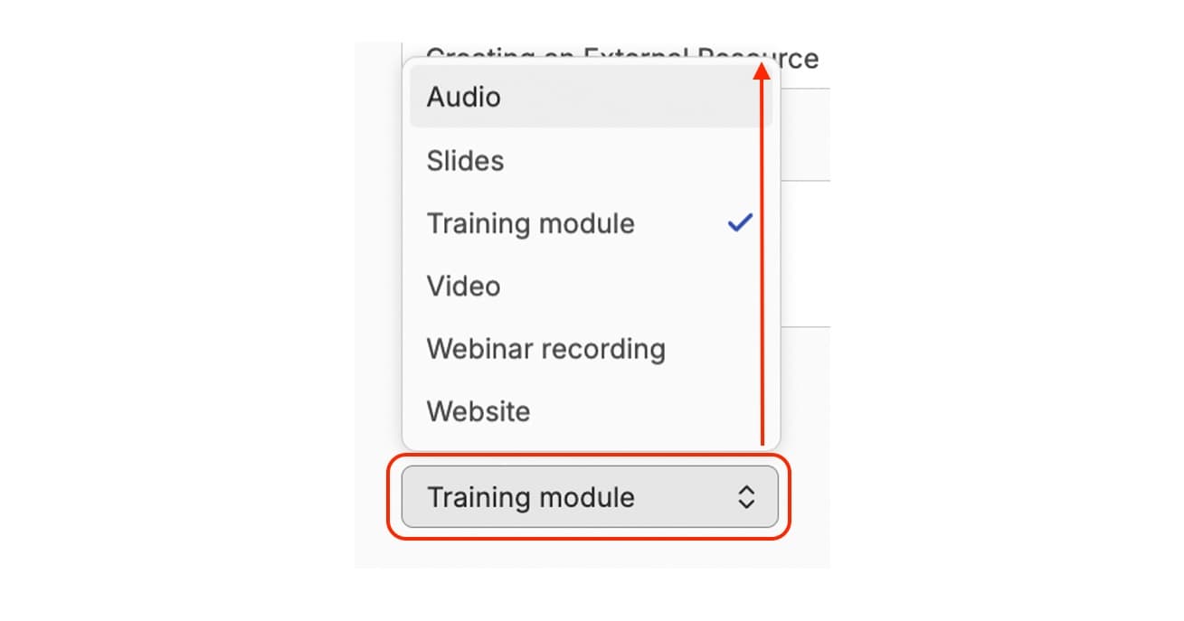 Finally, you will be asked to select from the dropdown menu what type of resource it is, for example, is it a podcast, a website, or a webinar?