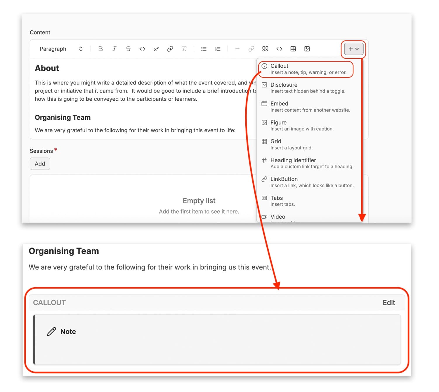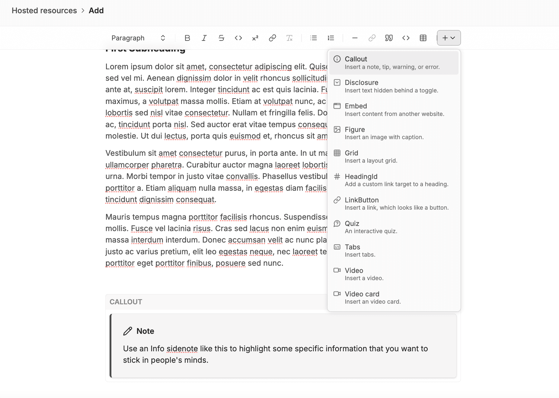 If you want to highlight some information, or give a warning or a tip within your learning resource, a ‘Callout’ (otherwise called a ‘Sidenote’) can do this for you.