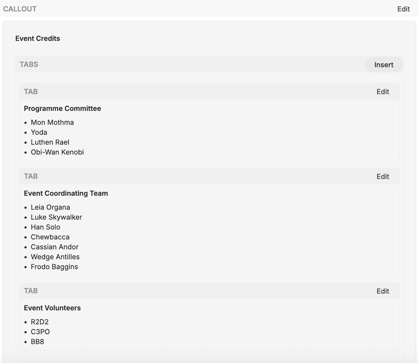 As a contributor, you will only ever need to focus on the ‘Content’ and ‘Data’ groups. Any edits made to the other two groups will be rejected by the editorial team.