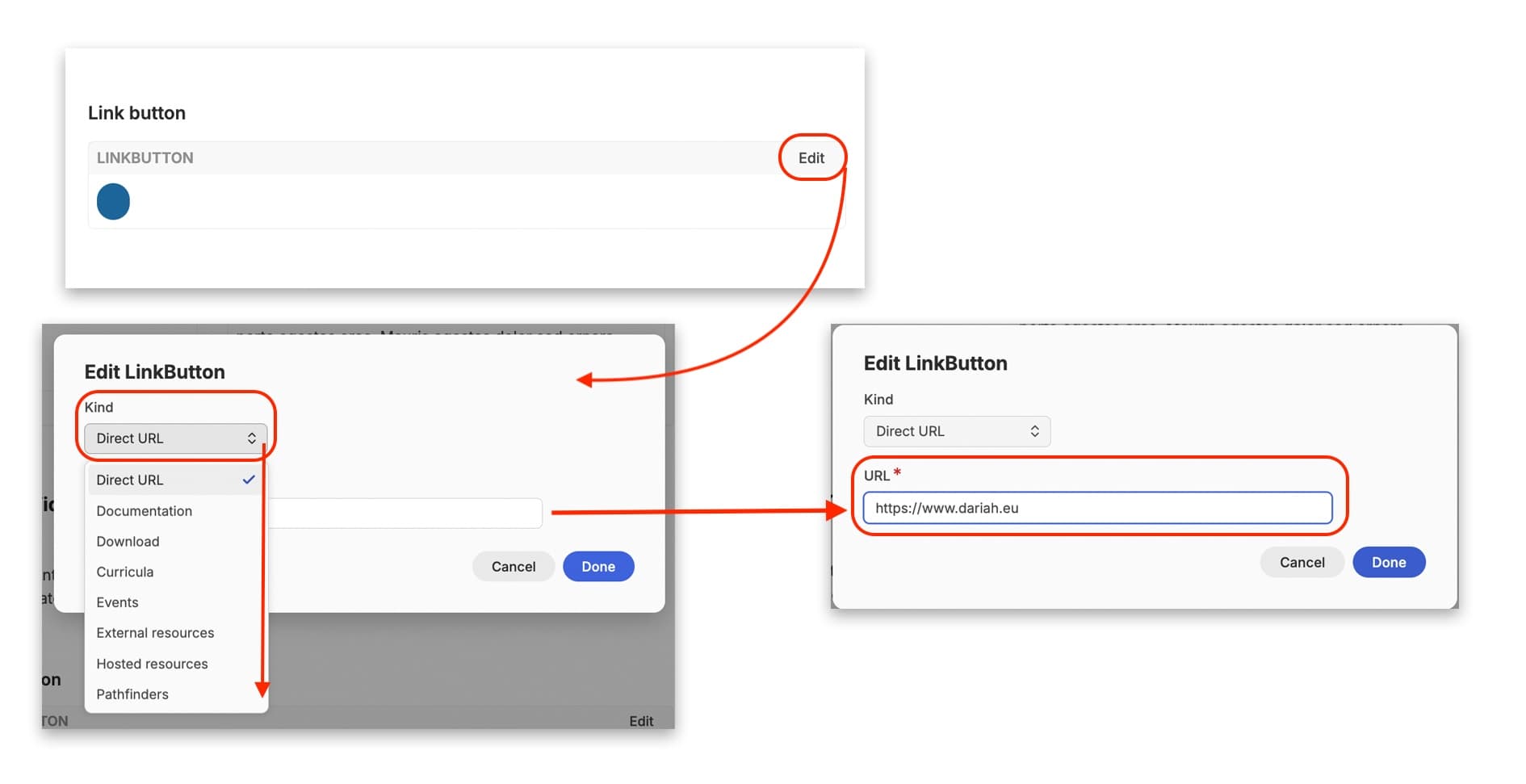 Campus Link - there are two ‘link’ icons. This first one to the left allows you to link to another resource or download within DARIAH-Campus. This is useful if you have related learning resources and want to guide users to them.