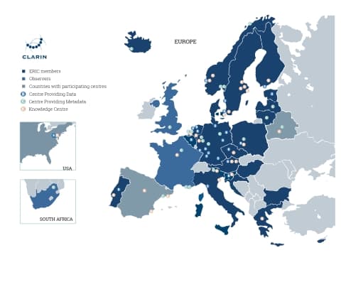 CLARIN stands for “Common Language Resources and Technology Infrastructure”. It is a research infrastructure that embodies the long-term vision of making the language resources and tools from all over Europe accessible online. It is organised as a distributed network of centres, offering resources, services and domain specific knowledge.