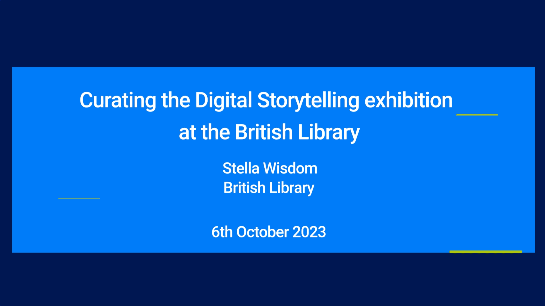 Evolving technologies have changed how writers write, and readers read. Stella Wisdom talks through the process of curating the British Library’s Digital Storytelling exhibition. From thought provoking autobiographical hypertexts to data journalism, uncanny ghost stories to weather poetry, steampunk literary adaptation to Elizabethan medical comedy. Stella discusses a range of born digital works, including interactive narratives that respond to user input, reading experiences personalised by data feeds, and immersive multimedia story worlds developed through audience participation.