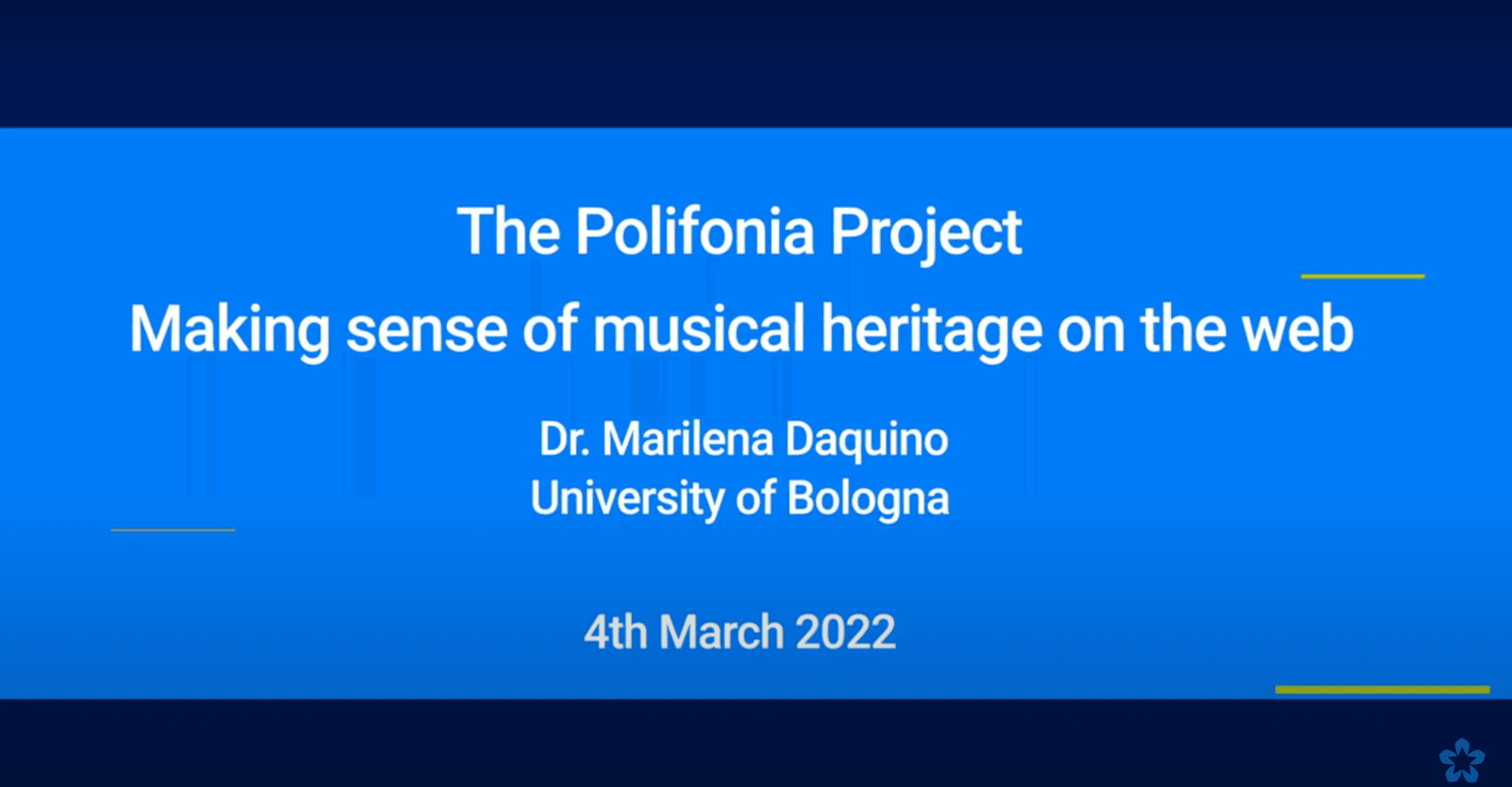 Polifonia is a H2020 project that aims at harmonising diverse information sources in the landscape of musical heritage and scholarship. The challenges are many, from data management, to knowledge organisation and dissemination barriers. In this talk, an ontology driven strategy to organise, share, and interact with the wealth of music data on the web, will be presented. This include solutions to engage with scholars and lay persons, with an emphasis on data visualisation and storytelling.