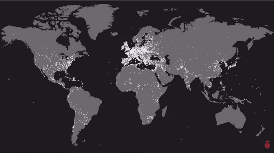 It is often necessary and valid to argue that a limited dataset represents a wider pattern in reality: data are usually small samples of the possible total of information. However, this has to be justified, and it is important both when working on your own data and when working with other people’s to consider whether the claims made for the data are genuinely justifiable given both its scope and the extent to which the data fulfill that scope. The scope has to be written – and where necessary, adjusted through the project – such that it matches the final dataset. An example of this problem would be the following map, produced from a Wikipedia dataset of historical battles and presented with the claim that “historically Europe has been overwhelmingly a centre of global conflict”.