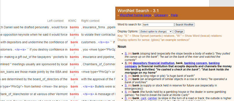 Using the concordance for discovering patterns involves mainly two concordance tools: