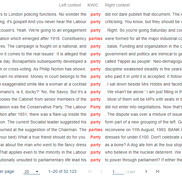 Corpora can also help to identify the different senses of a polysemous word. For instance, by looking at the concordances (i.e. …) of the noun party in the example below, we see occurrences of the different senses of the noun party, i.e. party in the sense of political party, but also in the sense of a social event.