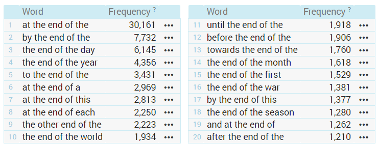 Unfortunately, with multi-billion-word corpora, the corpus size affects the score to such an extent, that it mainly brings up co-occurrences which are only frequent without being particularly interesting or useful.