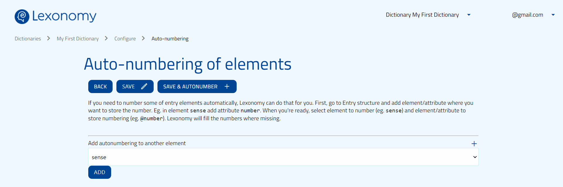 Entry elements can be numbered automatically using Auto-numbering. You can see detailed instructions about this on the Auto-numbering page. Note that this is not the same as generating the ID of the dictionary entry.